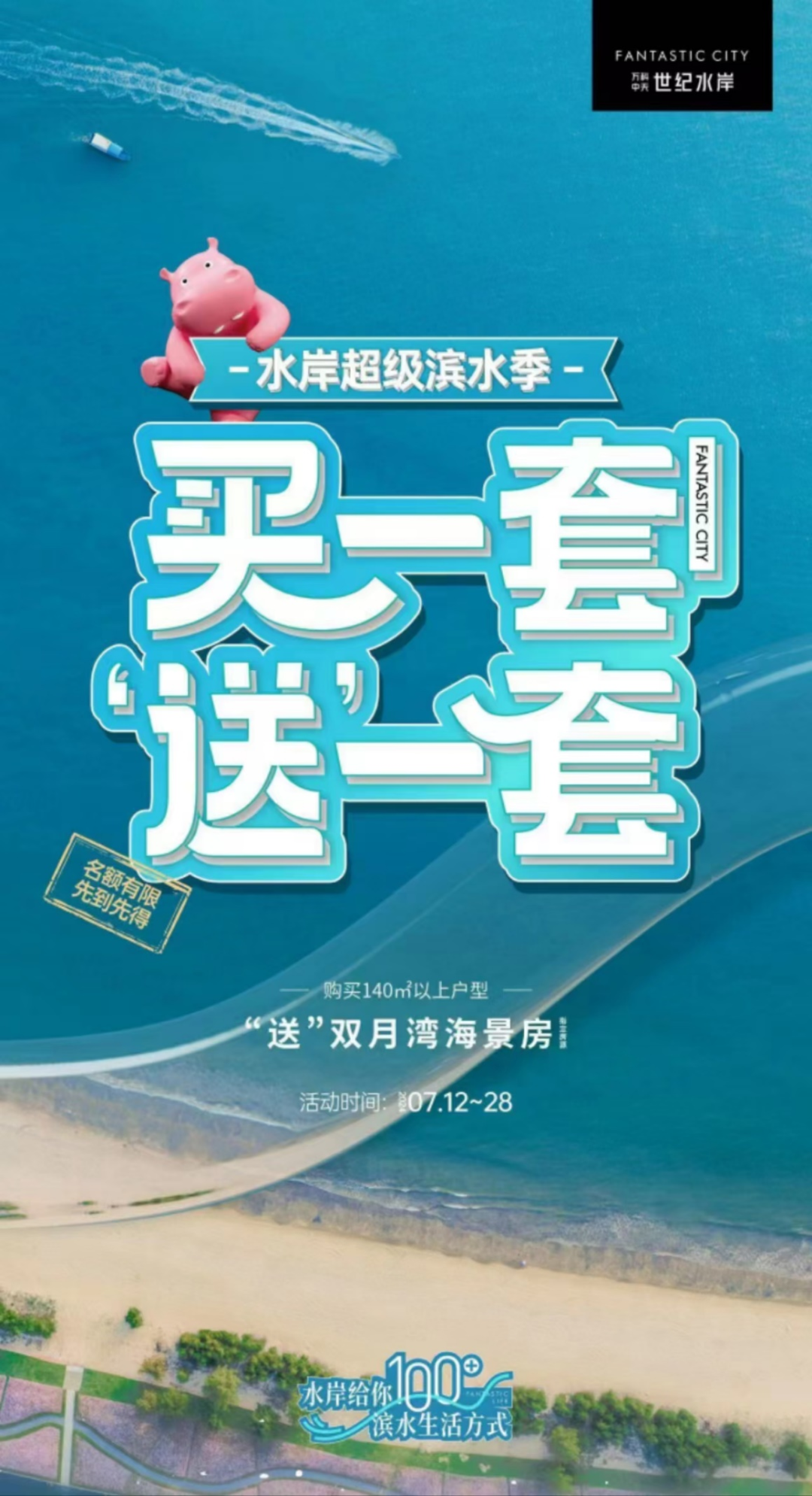 一位项目销售经理告诉记者,此次“买一送一”活动仅限购买面积140平米以上的户型,赠送的是位于广东惠州的双月湾公寓房,面积约为38平米。购房者也可以选择不参加活动而直接打折,折扣优惠相当于赠送的公寓总价,大约可优惠20多万元。