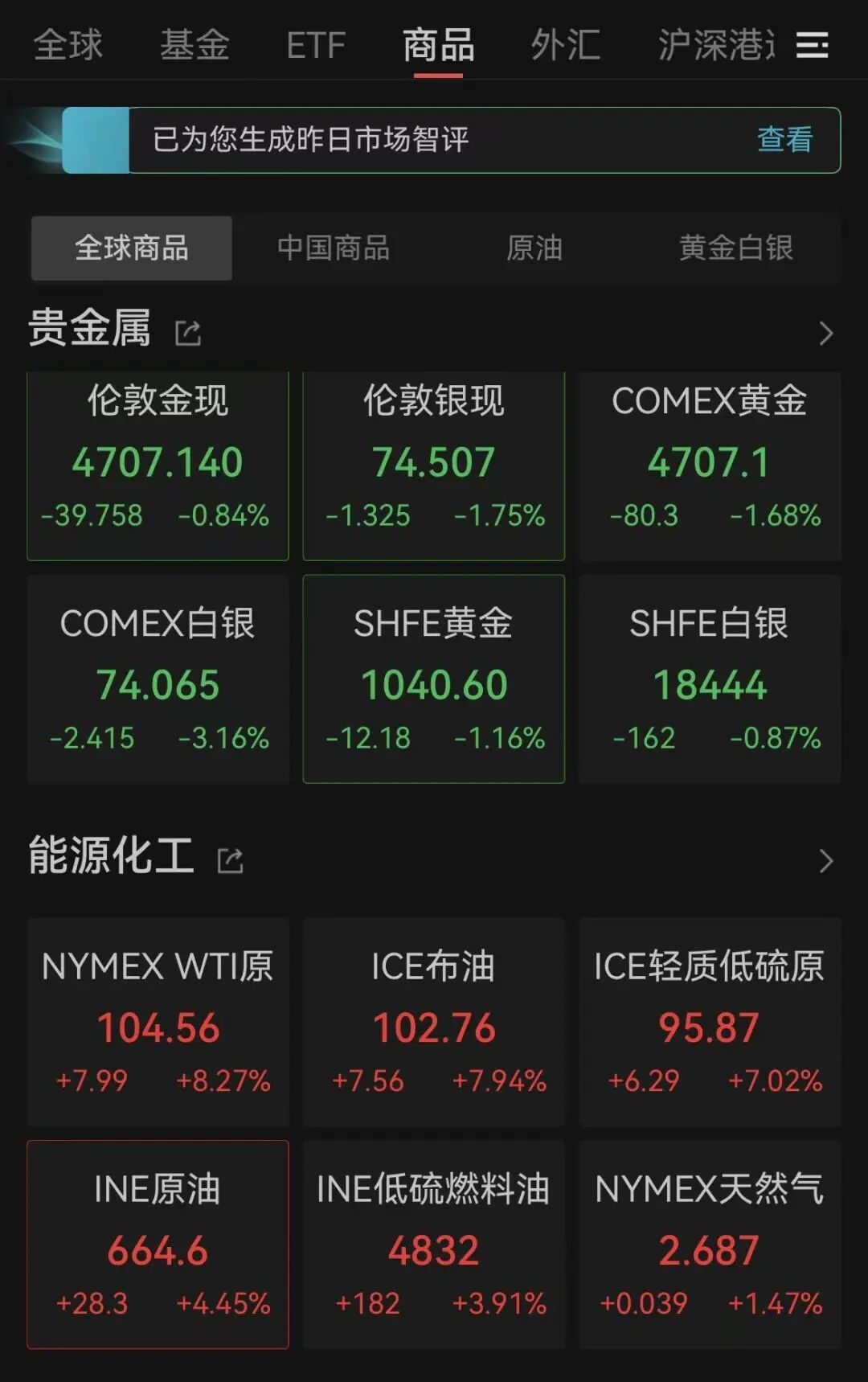 大宗商品方面,截至北京时间9:02,WTI原油期货、布伦特原油期货上涨8.27%、7.94%。伦敦金现价格下跌0.84%,COMEX黄金期货价格下跌1.68%。美元指数上涨0.32%。