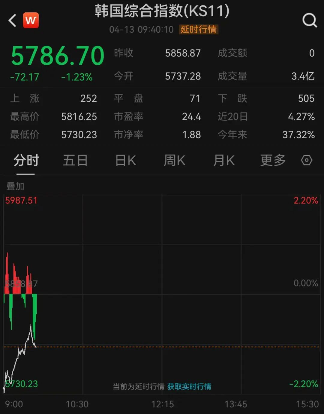 截至北京时间9时,日经225指数下跌0.89%,韩国综合指数下跌1.23%。