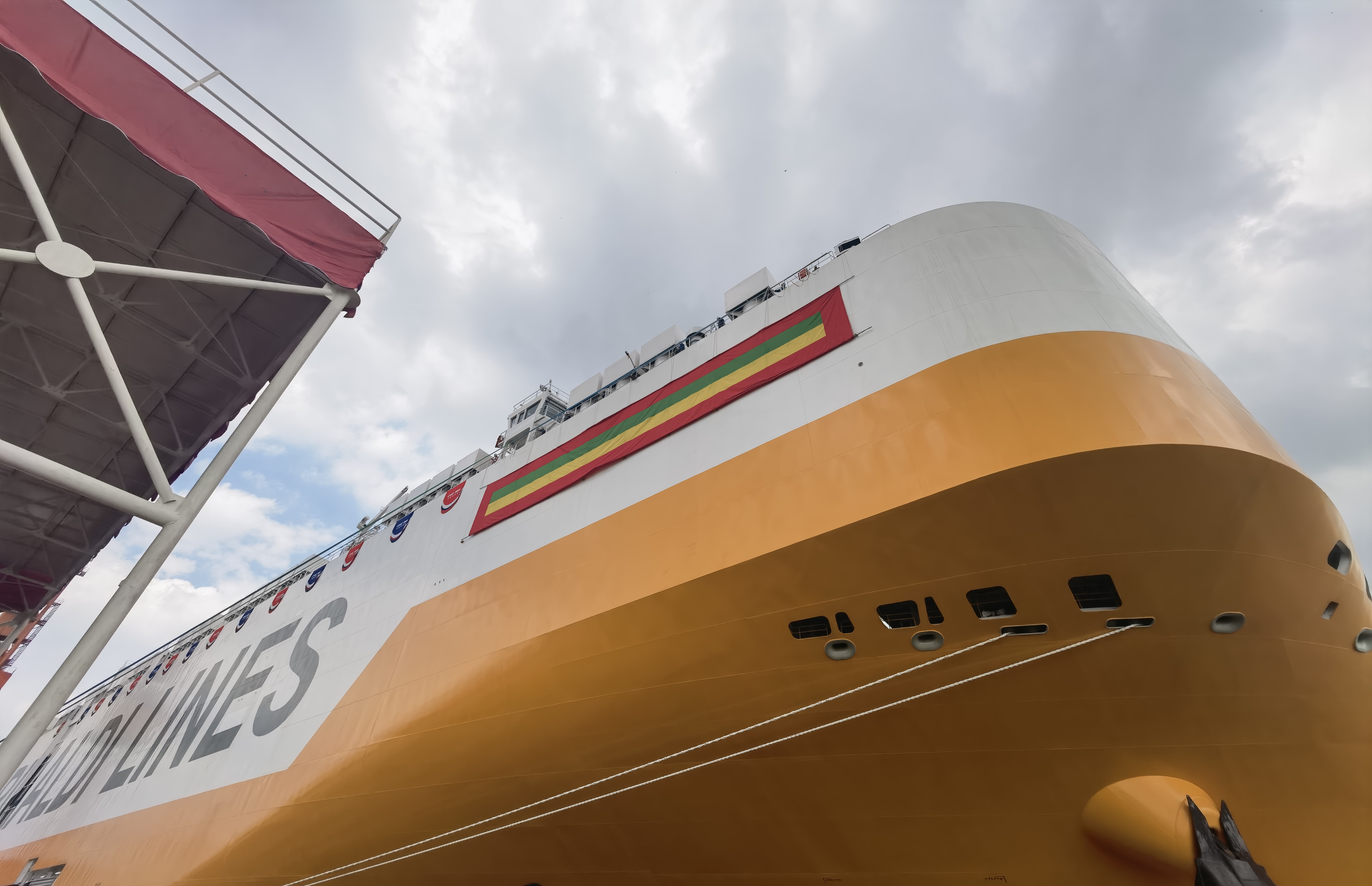 “‘GRANDE TIANJIN’号具备9000车标准装载能力,可兼容电动车、传统燃料汽车及重型滚装货物,其船坞及码头建造周期仅179天,刷新同型船建造纪录。”李芝忠透露,该船采用新型低油耗主机,集成扭曲舵、毂帽鳍等节能装置,显著降低能耗;同时配备中压岸电系统实现靠泊零碳排放,获得意大利船级社“氨燃料预留”认证,为未来零碳燃料改装预留技术空间。