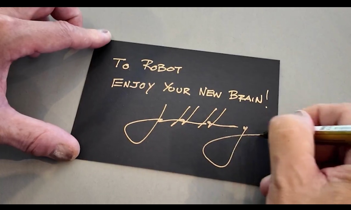 8月24日,英伟达机器人(NVIDIA Robotics)在社交平台发布配图为带有英伟达CEO黄仁勋签名的贺卡,上面写着“致机器人:好好享受你的新大脑”,配文明确标注发布时间为8月25日。