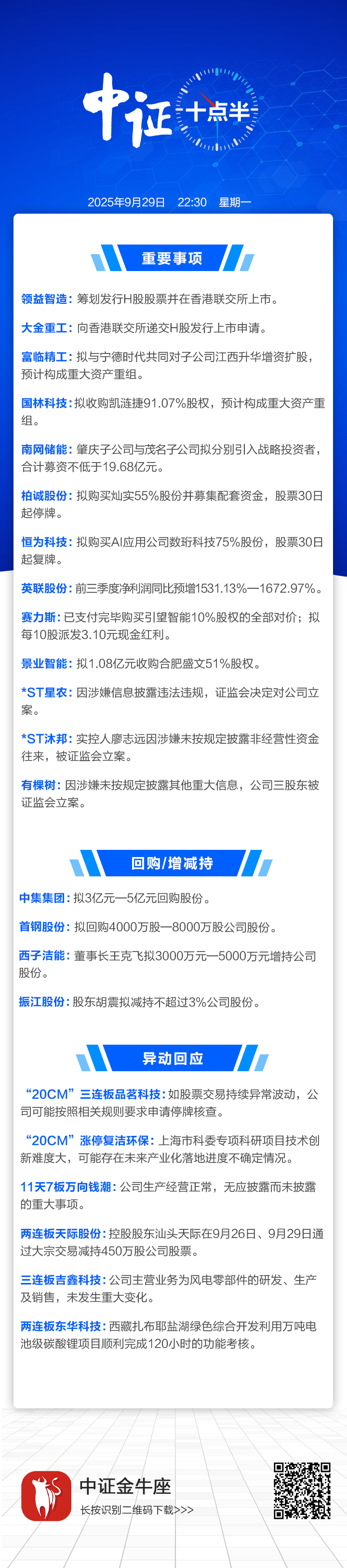 【中证十点半】富临精工:拟与宁德时代对江西升华增资扩股;领益智造拟赴港上市;“20CM”三连板品茗科技回应股价异动