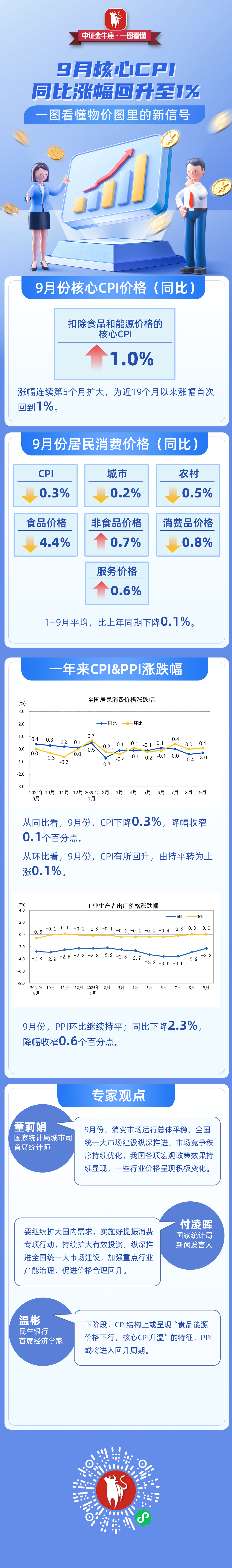 9月核心CPI同比涨幅回升至1%,一图看懂物价图里的新信号