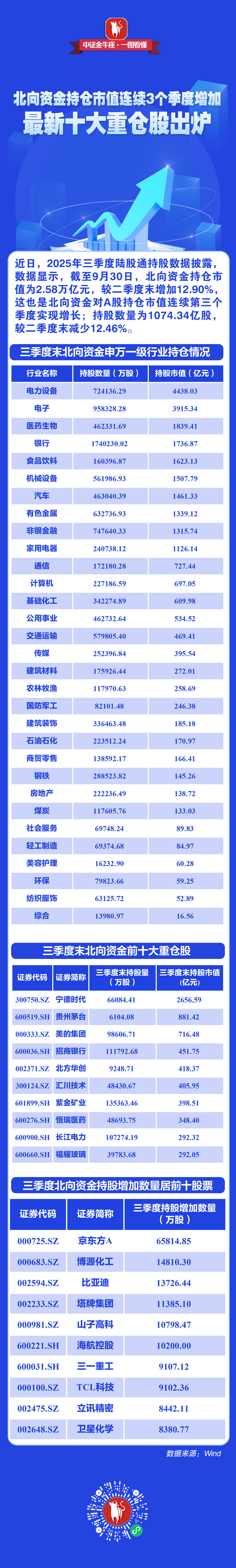 【一图看懂】北向资金持仓市值连续3个季度增加,最新十大重仓股出炉