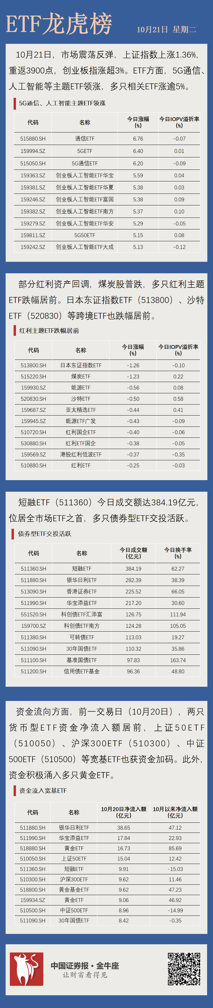 【ETF龙虎榜】5G通信、人工智能主题ETF领涨