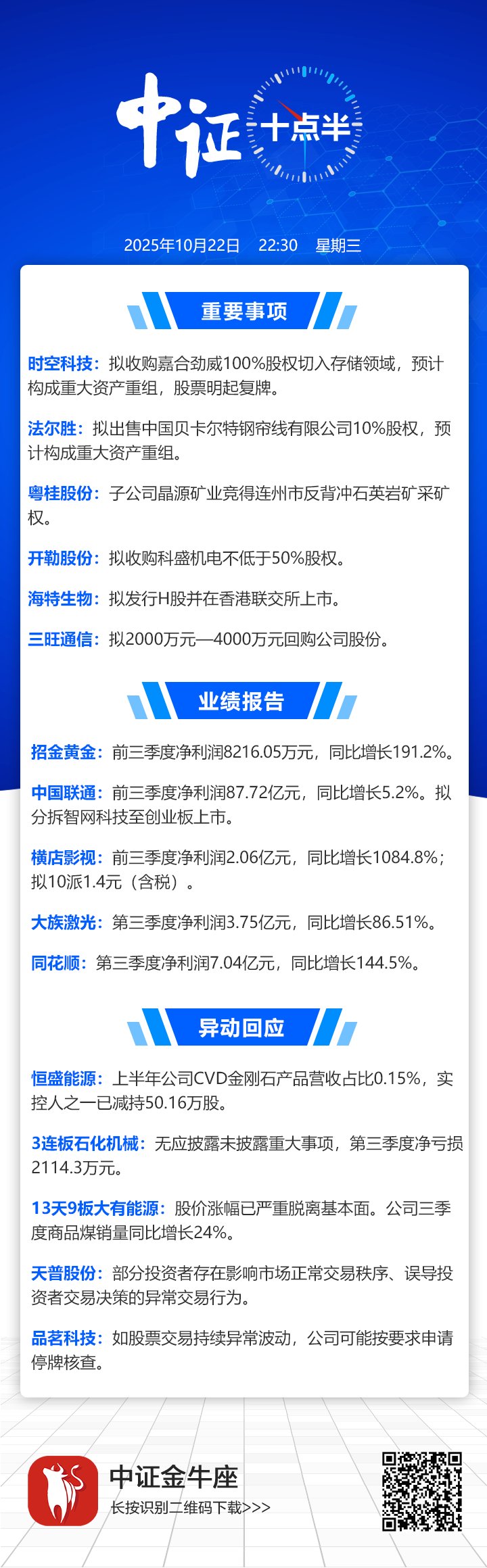 【中证十点半】时空科技明起复牌;大有能源:股价涨幅严重脱离基本面;海特生物拟赴港上市