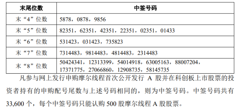 摩尔线程11月25日晚发布首次公开发行股票并在科创板上市网下初步配售结果及网上中签结果公告。