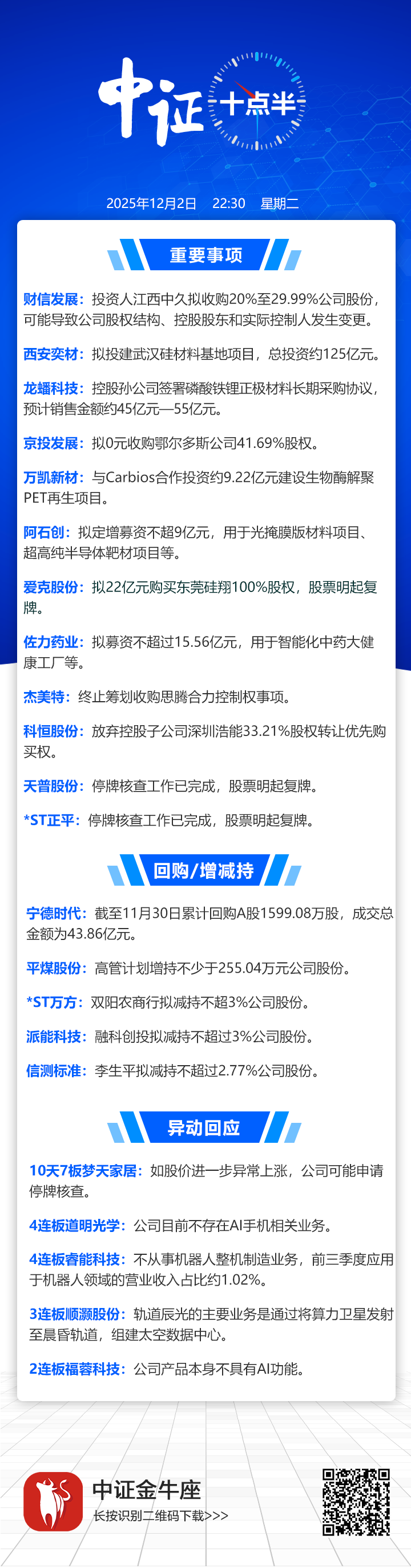 【中证十点半】爱克股份拟22亿元购买东莞硅翔100%股权;10天7板梦天家居提示风险;天普股份、*ST正平明起复牌
