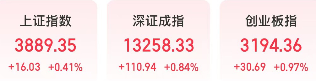 今天,A股反弹。截至收盘,上证指数上涨0.41%,深证成指上涨0.84%,创业板指上涨0.97%。