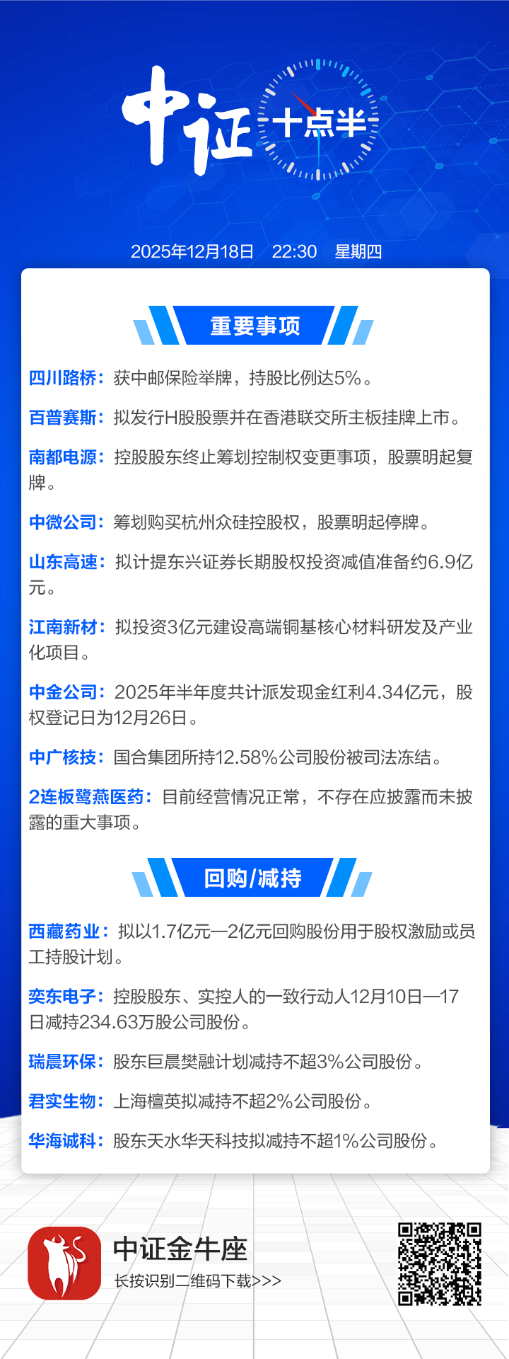 【中证十点半】百普赛斯拟赴港上市;南都电源控股股东终止筹划控制权变更,明起复牌