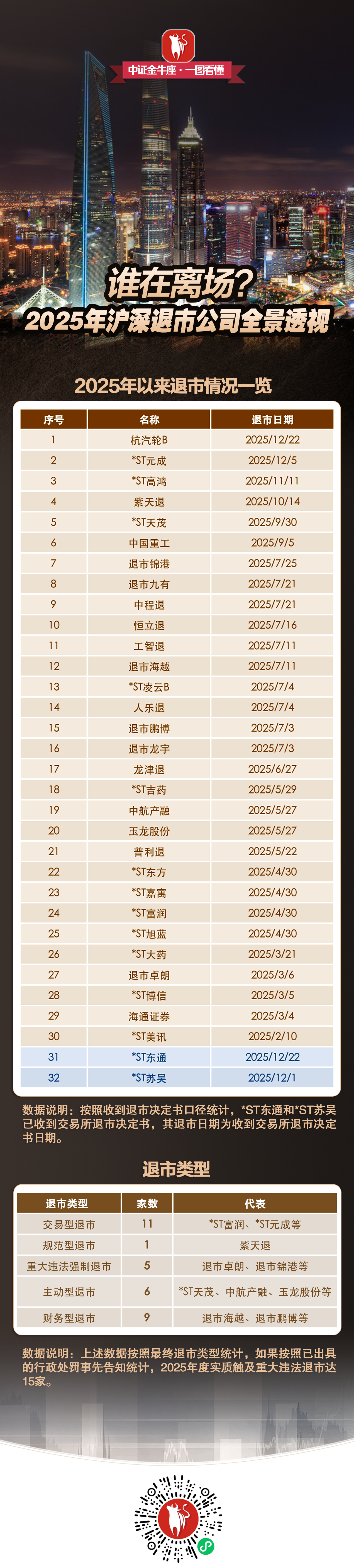 【一图看懂】2025年沪深退市全景:谁在离场?