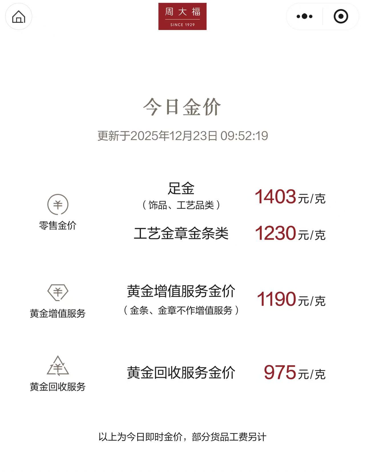 12月23日,随着国际国内金价创下历史新高,多家黄金珠宝品牌公布的首饰金报价也水涨船高,突破1400元/克关口。其中,周大福、周生生首饰金报价均达到1403元/克,老庙黄金报价达到1402元/克,六福珠宝、金至尊报价达到1401元/克。
