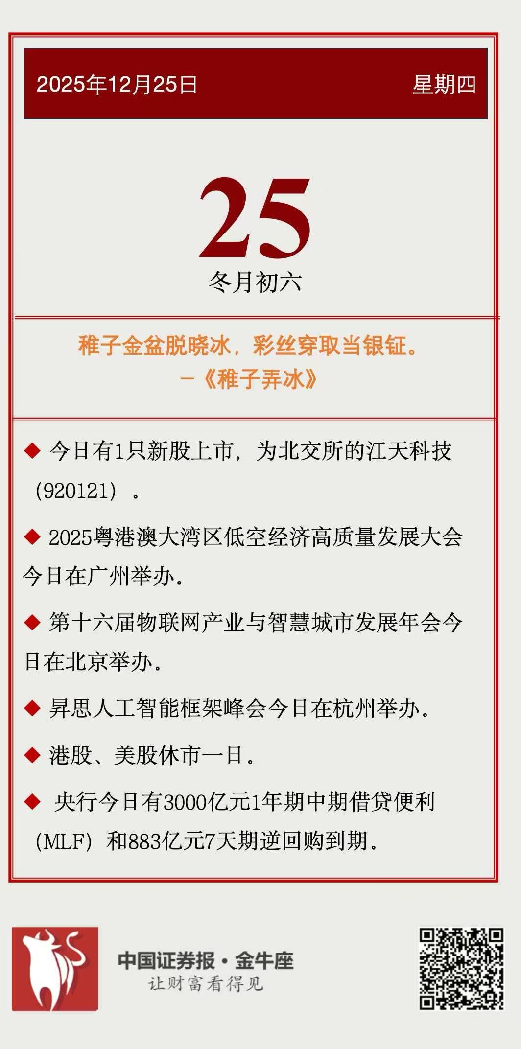 【投资日历】周四(12月25日)资本市场大事