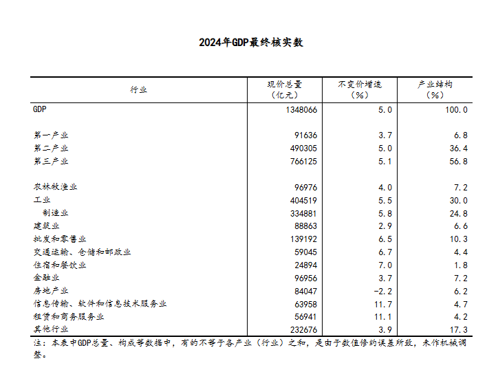 国家统计局:经最终核实2024年GDP现价总量为1348066亿元