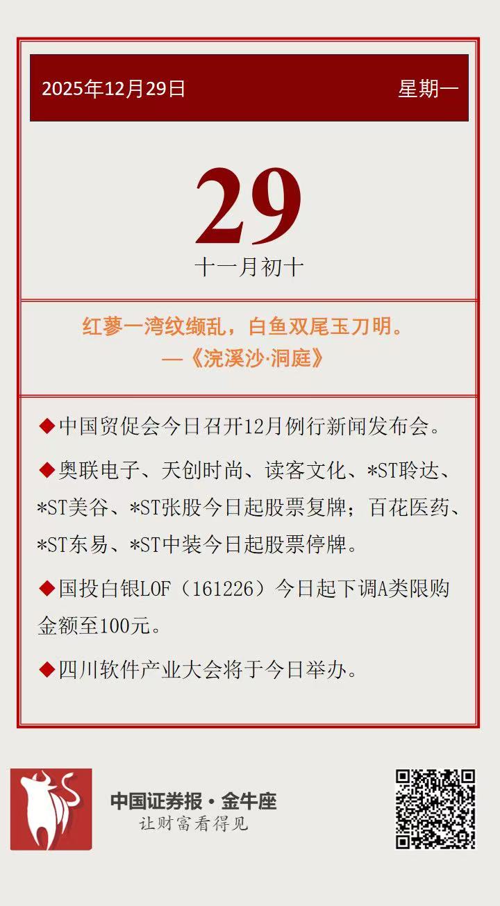 【投资日历】周一(12月29日)资本市场大事