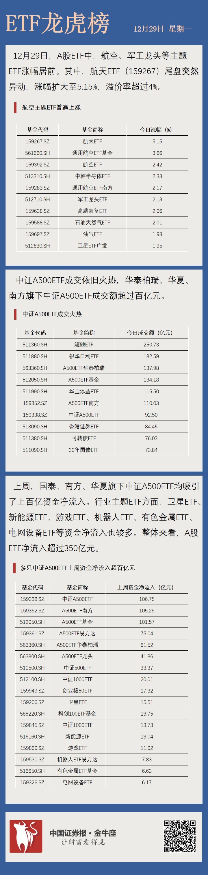 【ETF龙虎榜】尾盘突然拉升!航天ETF大涨