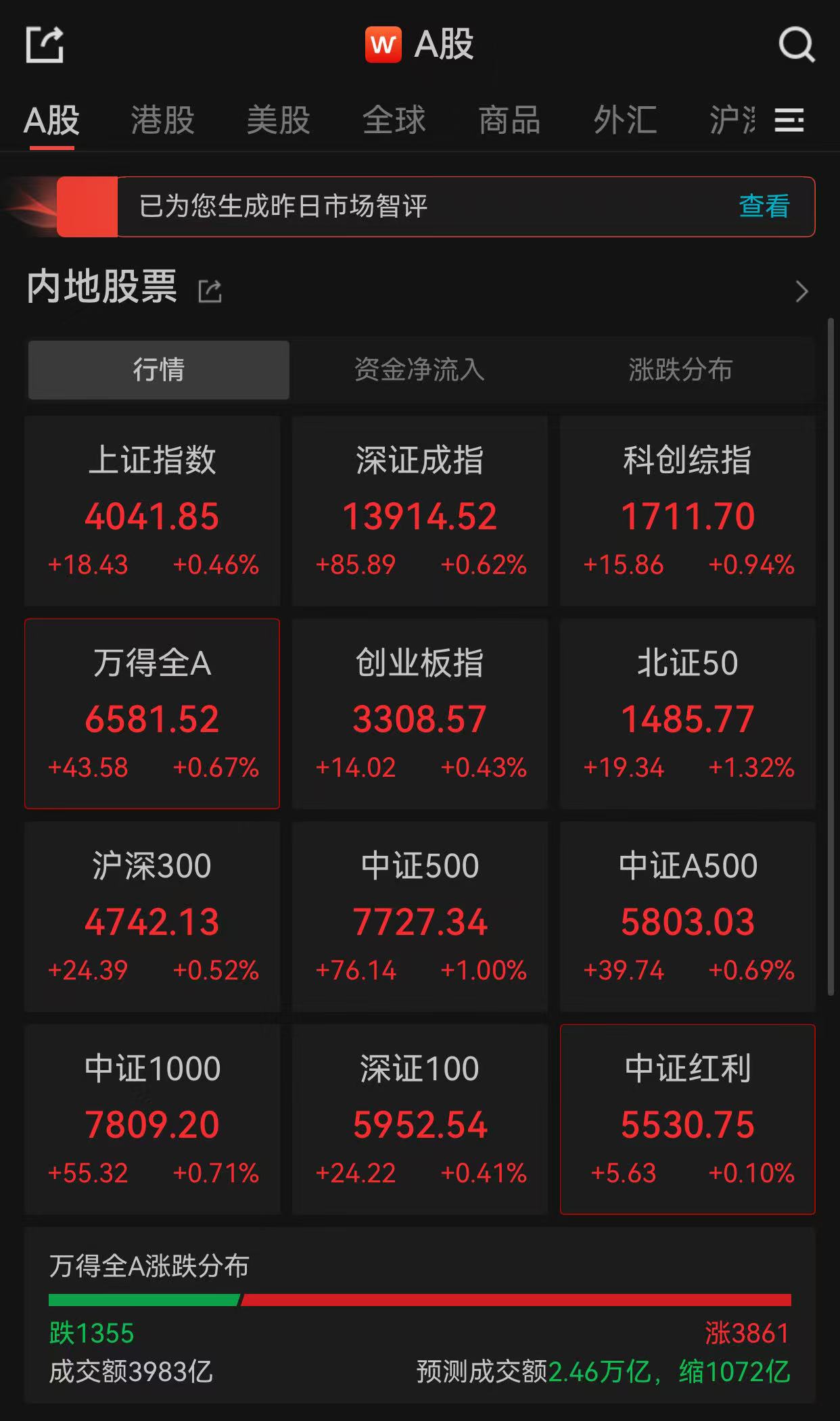 1月6日早盘,A股市场走强。Wind数据显示,截至9:38,上证指数、深证成指、创业板指分别上涨0.46%、0.62%、0.43%。上证指数突破2025年11月14日的阶段高点,创逾十年新高。整个A股市场超3800只股票上涨。