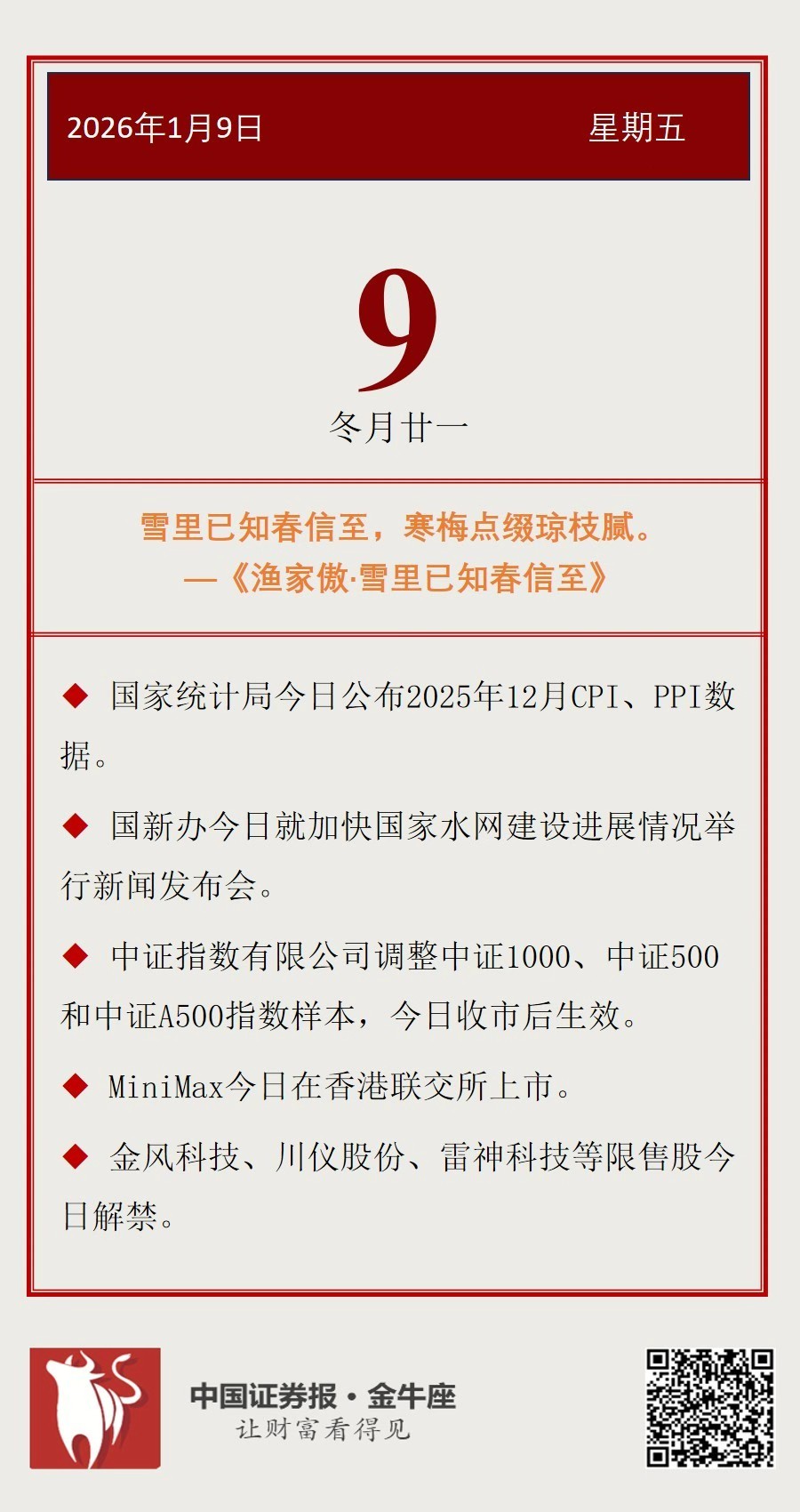 【投资日历】周五(1月9日)资本市场大事
