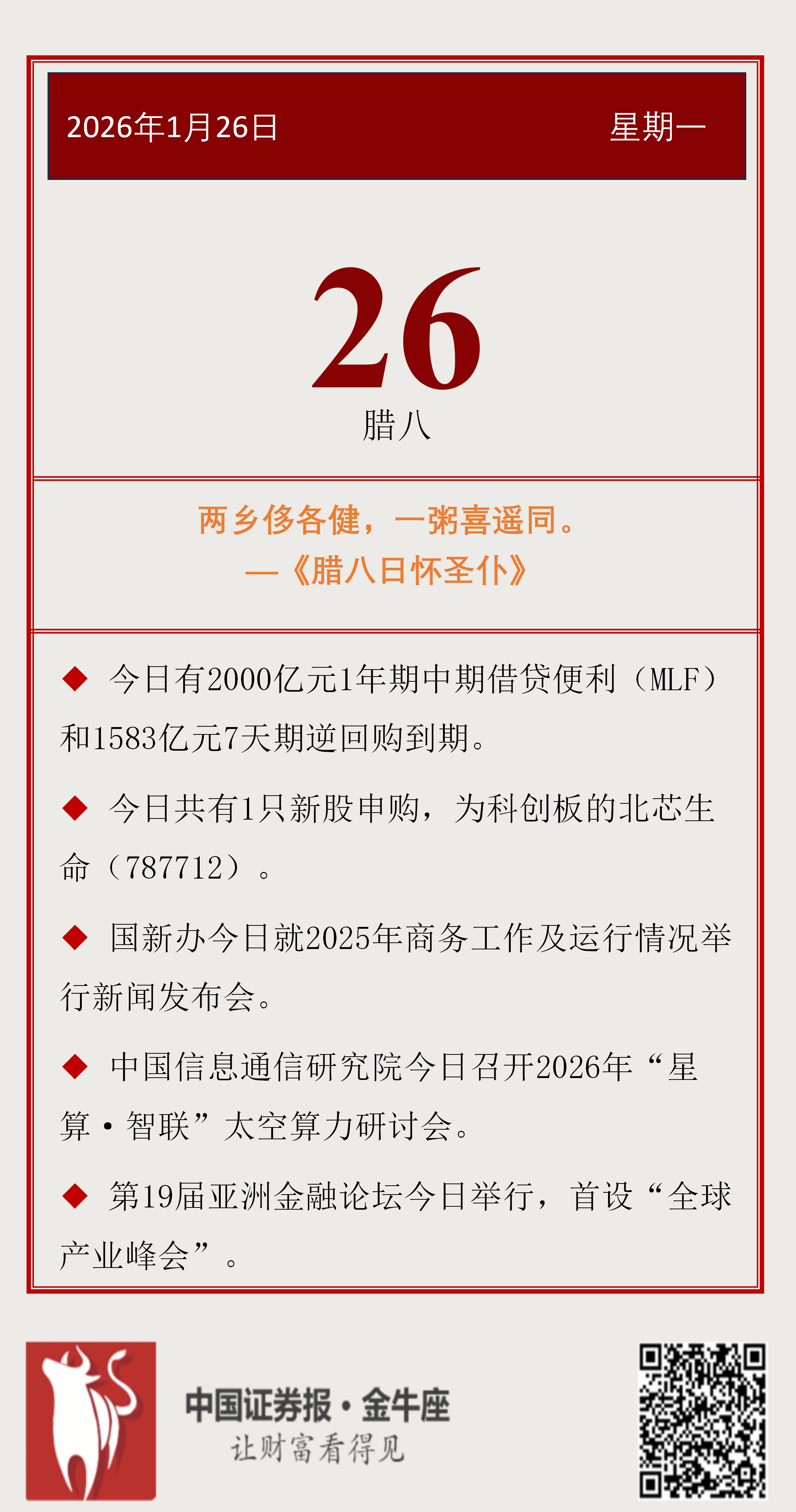 【投资日历】周一(1月26日)资本市场大事