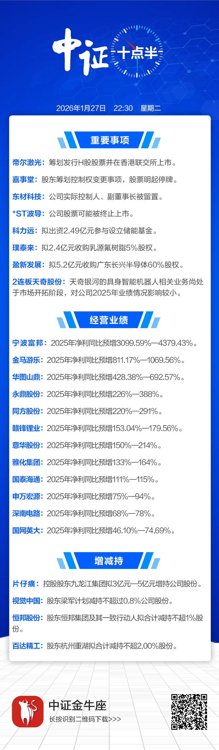 【中证十点半】宁波富邦2025年净利润预增超30倍;帝尔激光拟赴港上市;东材科技副董事长被留置