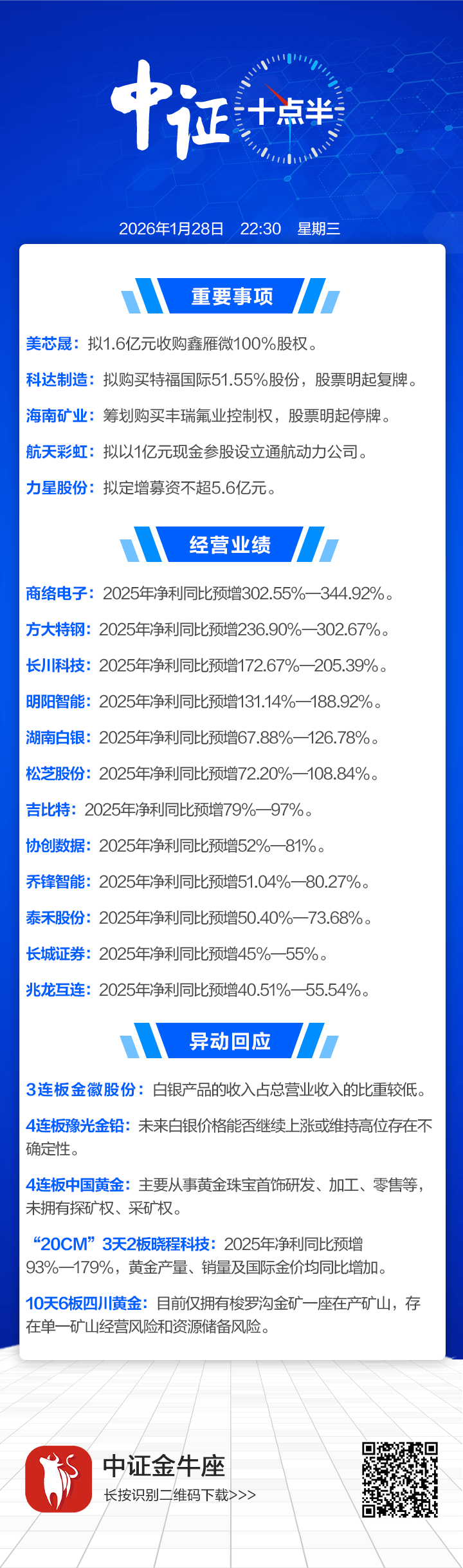 【中证十点半】湖南白银2025年净利润大增;海南矿业拟收购丰瑞氟业控制权;多只黄金股回应