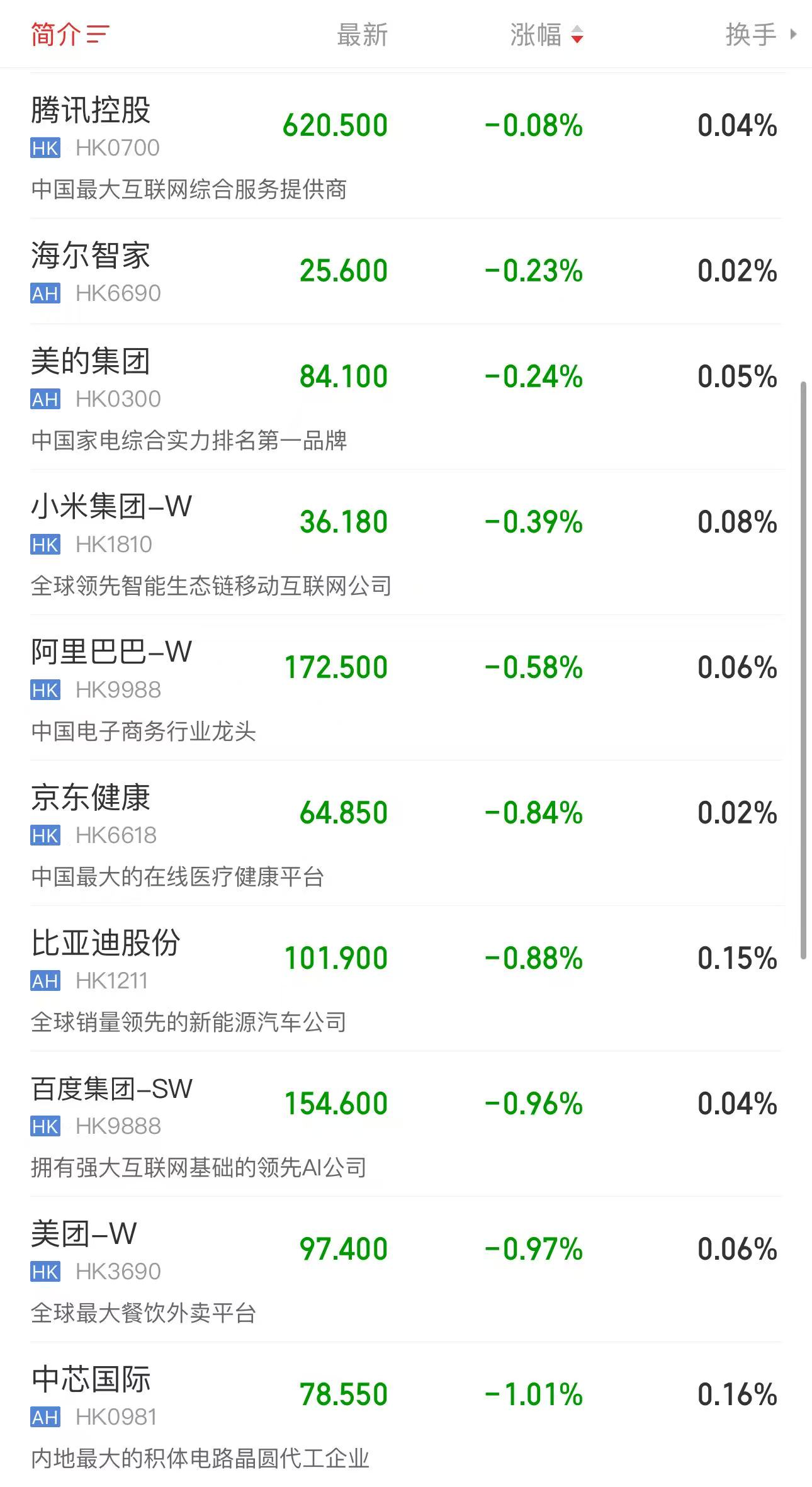 1月29日,香港恒生指数开盘跌0.72%,恒生科技指数跌0.79%。截至9:45,阿里巴巴-W、小米集团-W、美团-W、百度集团-W、京东集团-SW、蔚来-SW等集体下跌,其中,蔚来-SW跌超5%,京东集团-SW跌超2%。
