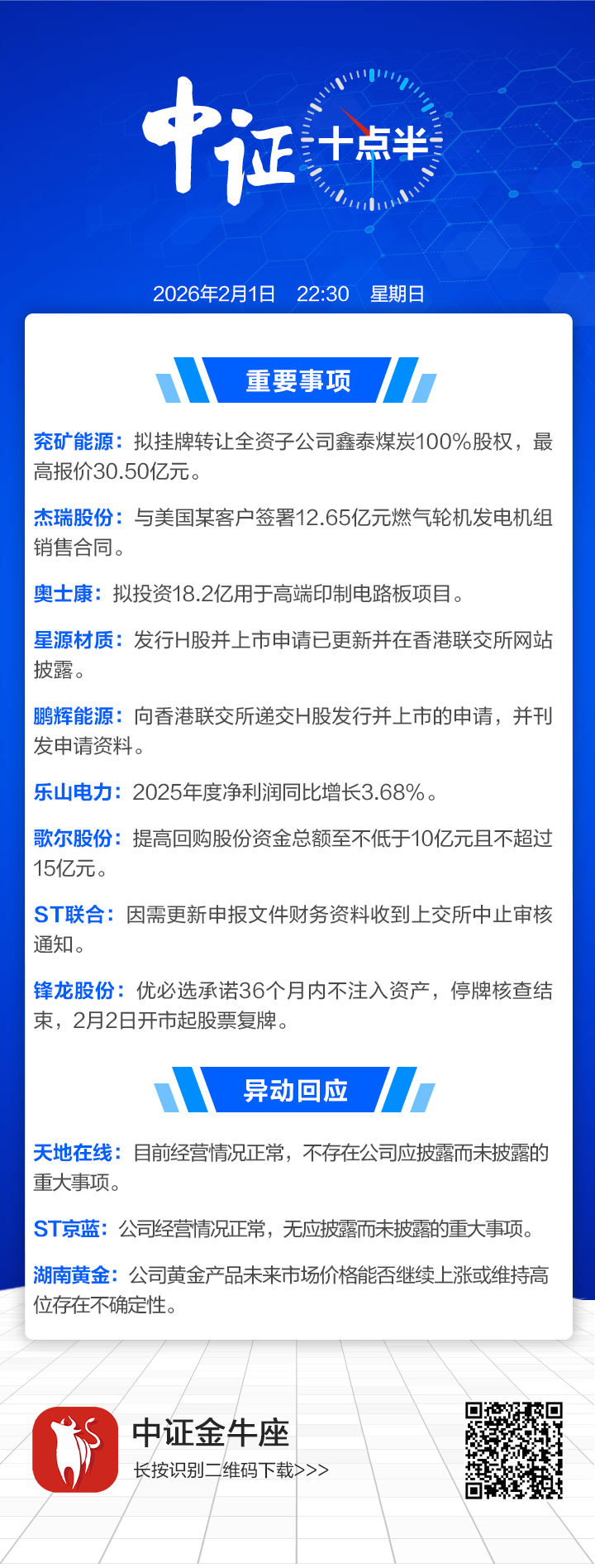 【中证十点半】兖矿能源拟挂牌转让子公司100%股权;大牛股锋龙股份明起复牌