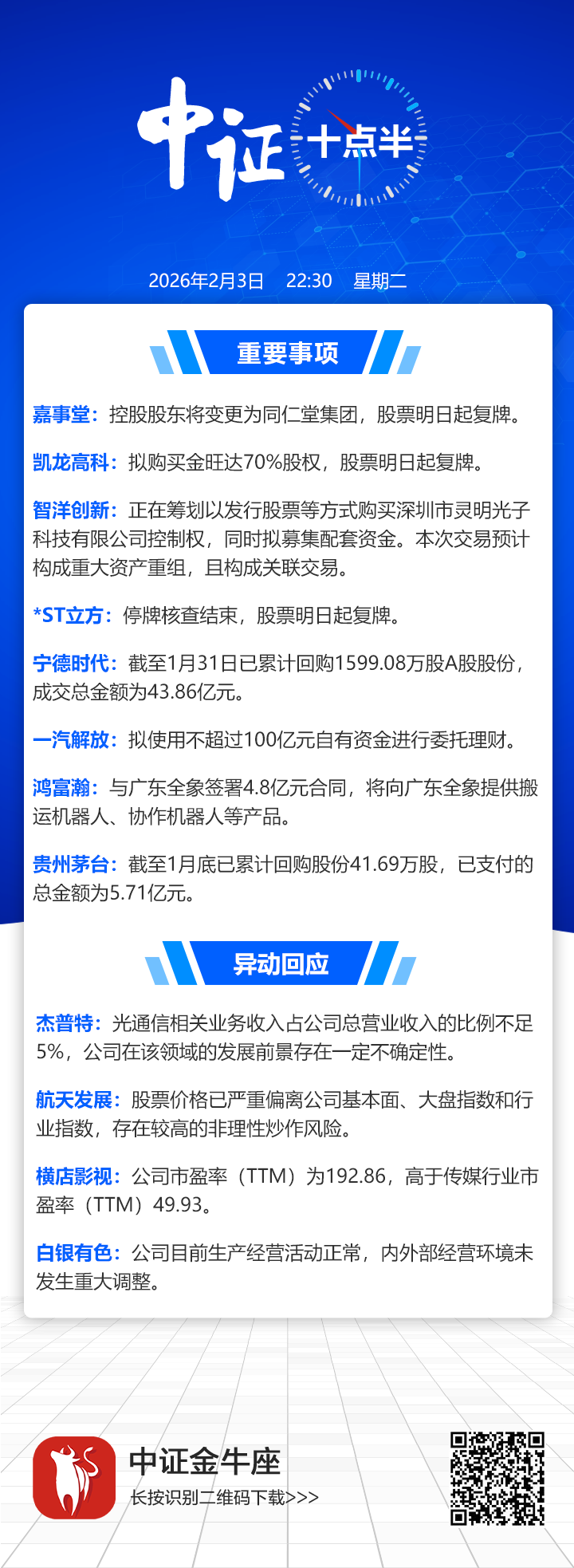 【中证十点半】智洋创新筹划重大资产重组;鸿富瀚签下4.8亿元机器人产品大单