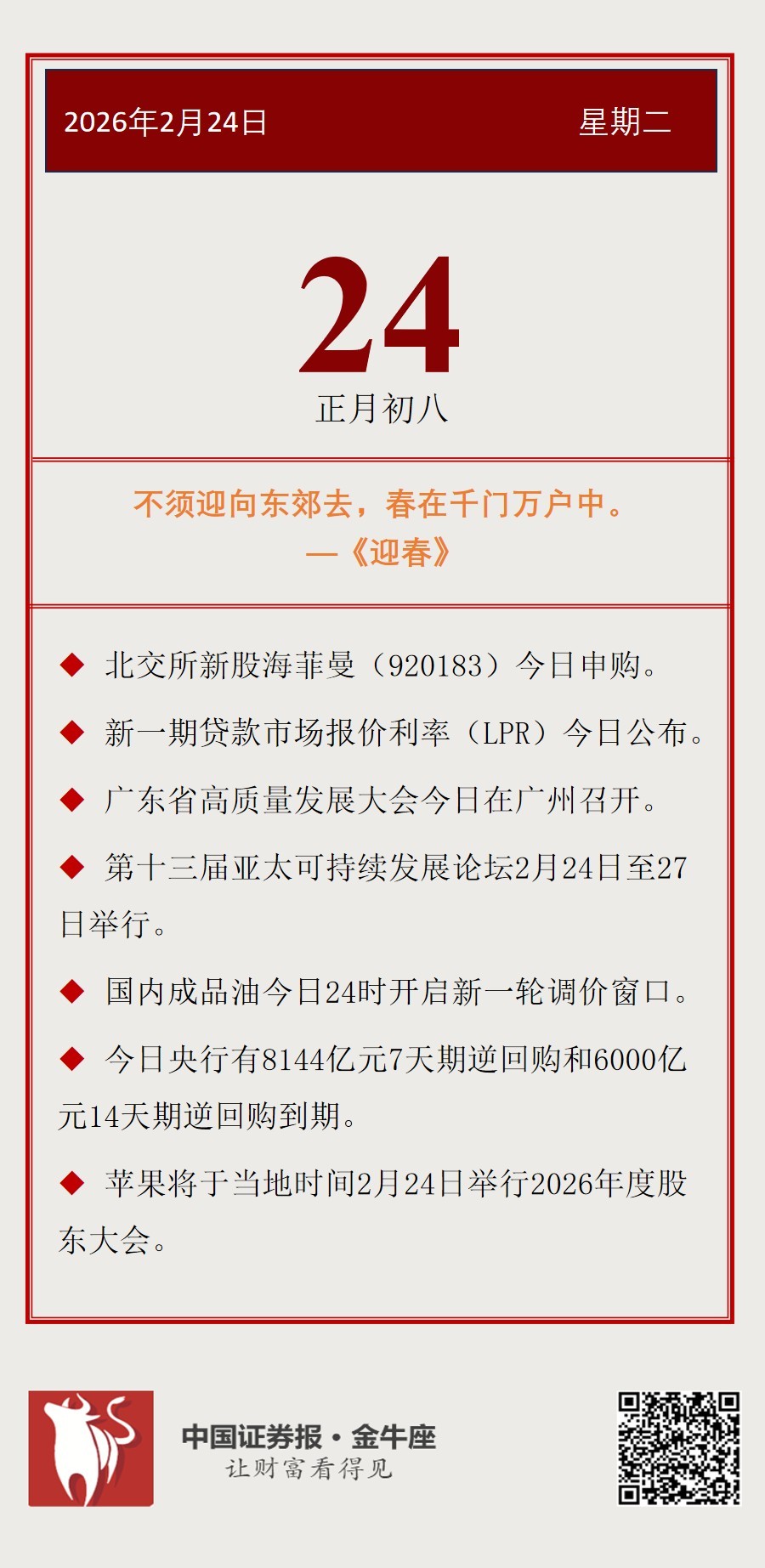 【投资日历】周二(2月24日)资本市场大事