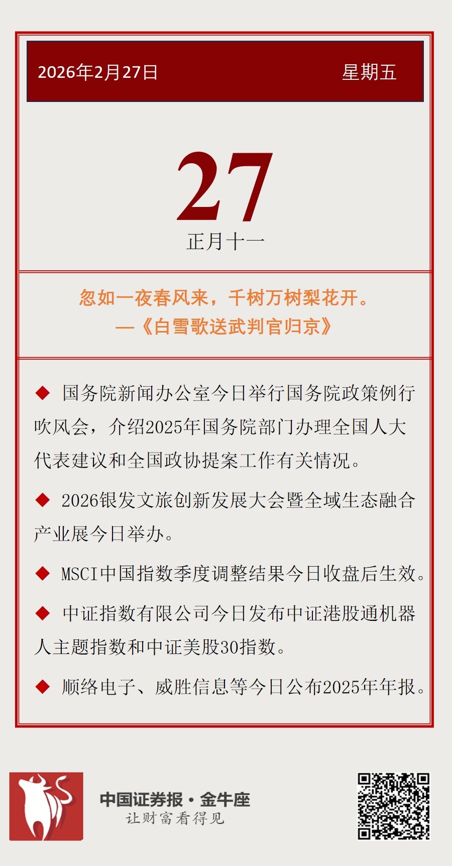 【投资日历】周五(2月27日)资本市场大事