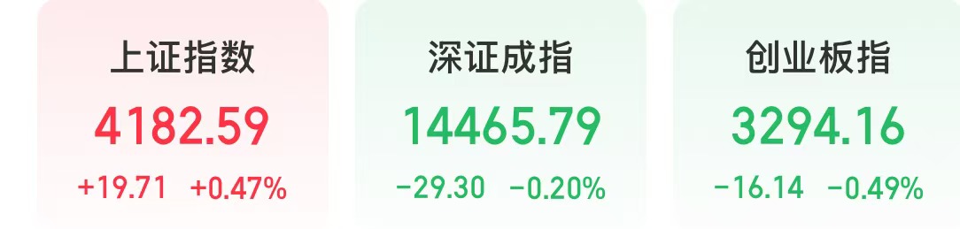 在权重股带动下,A股今天低开高走,三大股指盘中集体翻红。截至收盘,上证指数上涨0.47%,深证成指下跌0.2%,创业板指0.49%。