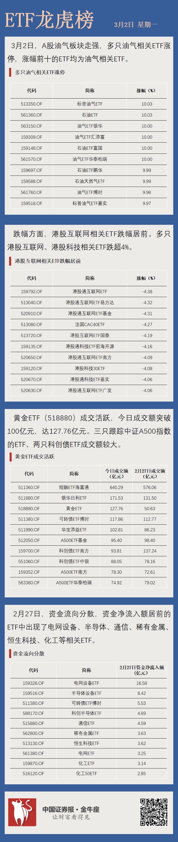 【ETF龙虎榜】多只油气相关ETF,涨停!