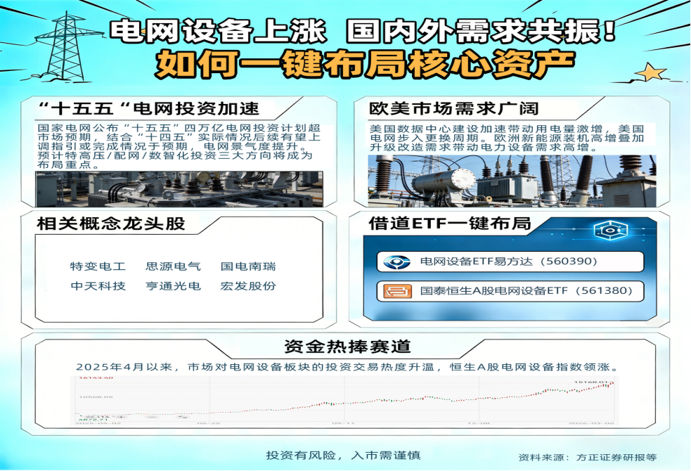 分析人士认为,电网设备的需求端仍具有较强支撑,短期波动不改长期向好。一方面,近日,提请审议的政府工作报告提出,“着力构建新型电力系统,加快智能电网建设”,并首次写入“算电协同”,叠加国家电网计划“十五五”期间投入4万亿元建设新型电力系统,板块政策利好不断。另一方面,AI带动耗电量大涨,全球尤其是西方国家电网需要更新换代,中国的电网设备借机出海,订单量和价格有望迎来双增。