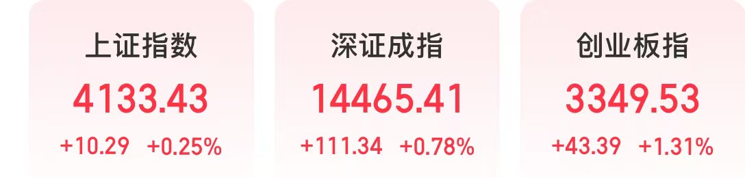 今天,A股上涨。截至收盘,上证指数上涨0.25%,深证成指上涨0.78%,创业板指上涨1.31%。