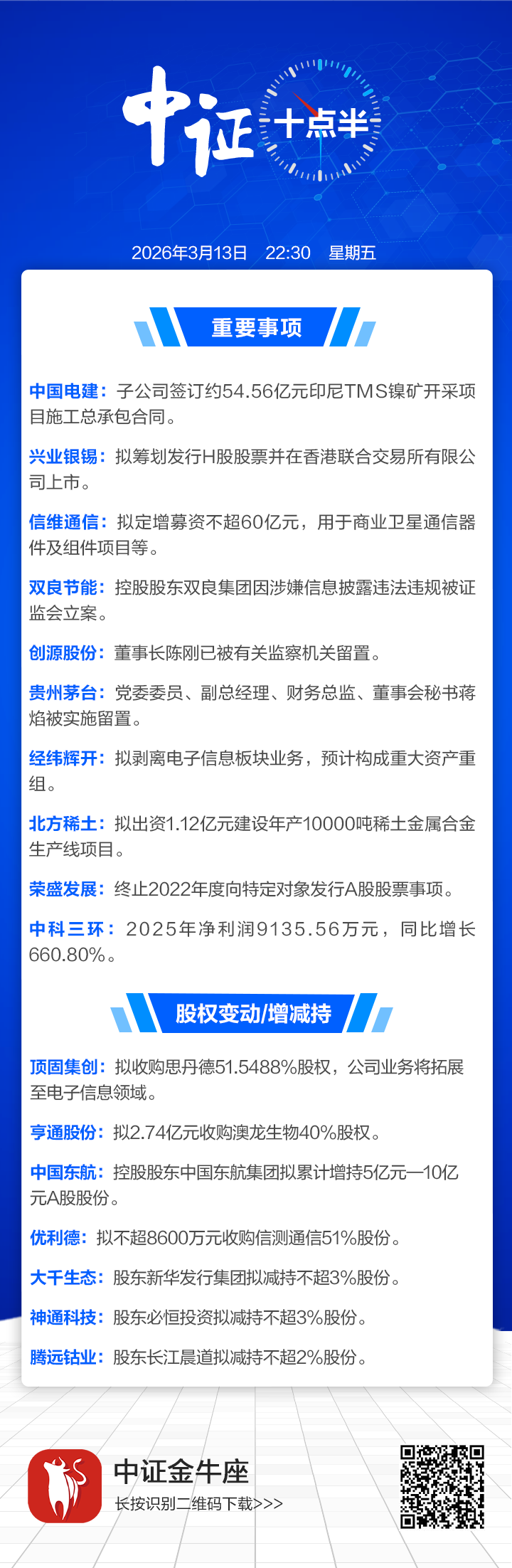 【中证十点半】经纬辉开拟剥离电子信息板块业务;信维通信拟定增募资不超60亿元;贵州茅台副总经理蒋焰被留置