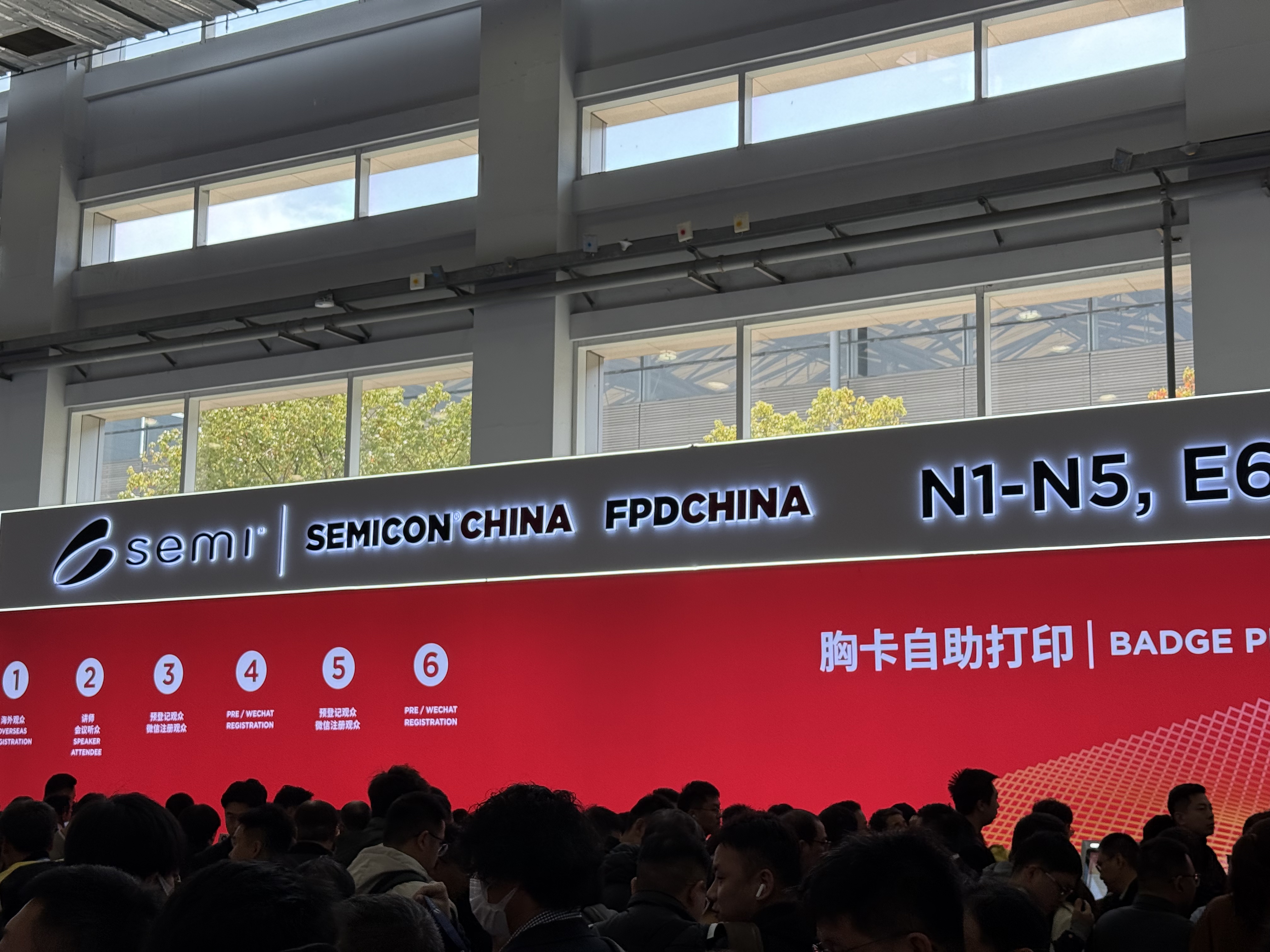作为行业盛会,SEMICON China 2026人气高涨,展馆附近车流不息、人头攒动。中国证券报・中证金牛座记者从排队到入馆共花费15分钟,进馆后发现场馆内已人头攒动,现场还有不少外籍观众。