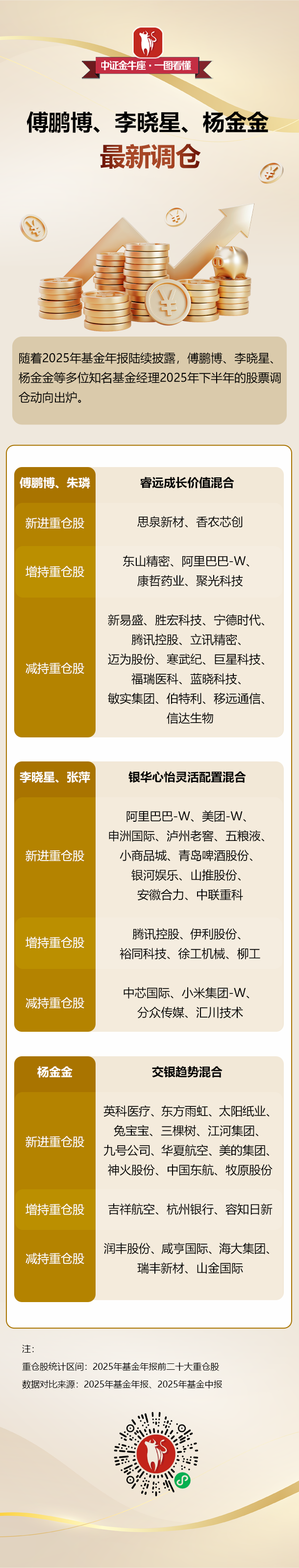 【一图看懂】傅鹏博、李晓星、杨金金,最新调仓