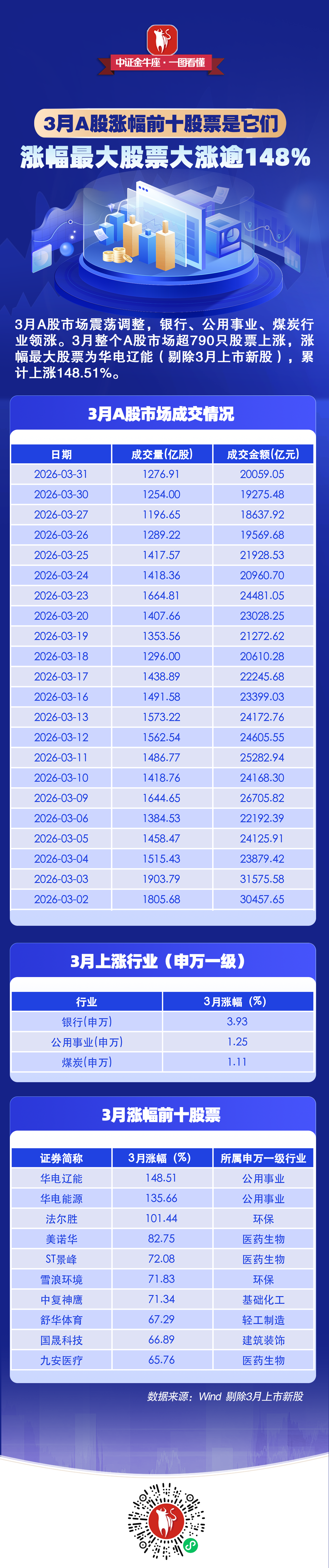 【一图看懂】3月A股收官,涨幅前十股票出炉
