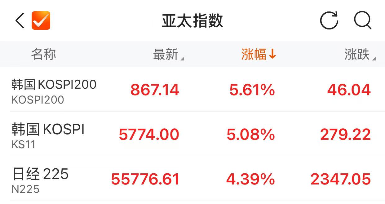 4月8日,日韩股市大幅高开,开盘后均直线拉升。截至北京时间8:45,日经225指数上涨4.39%,报55776.61点。韩国综合指数上涨5.08%,报5774.00点。