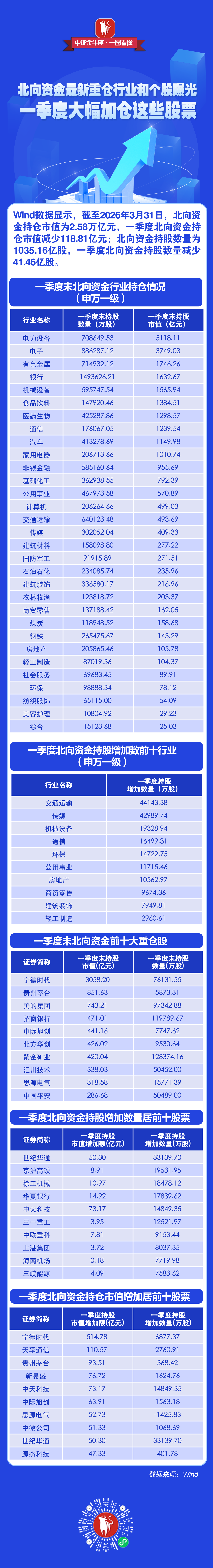 【一图看懂】北向资金最新重仓行业和个股曝光,一季度大幅加仓这些股票