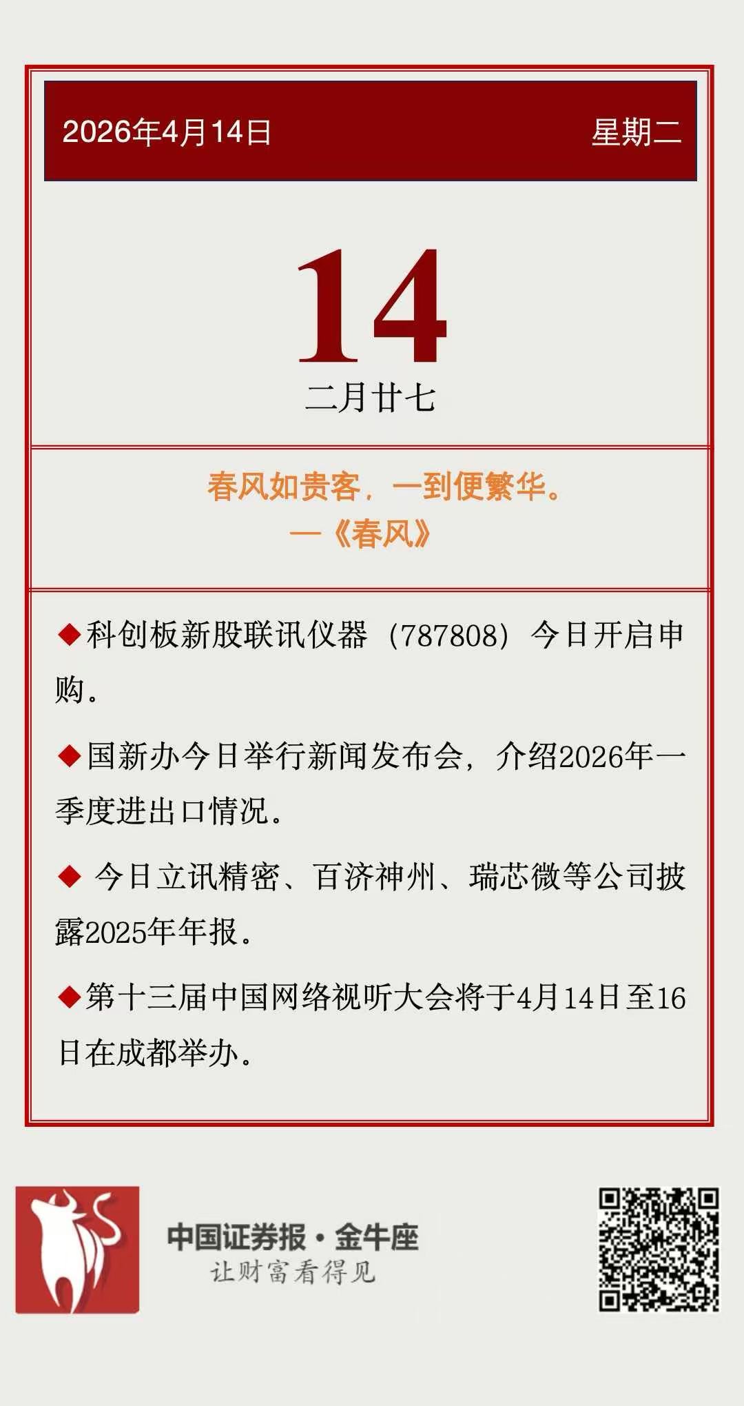 【投资日历】周二(4月14日)资本市场大事