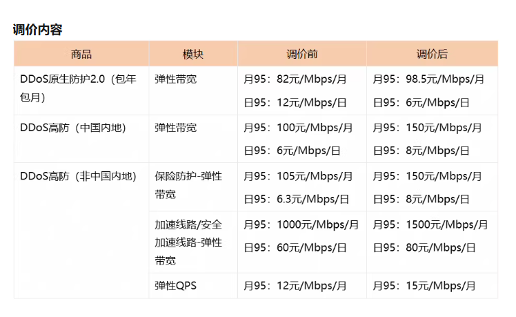 阿里云7月15日起对DDoS防护产品调价,最高上调50%