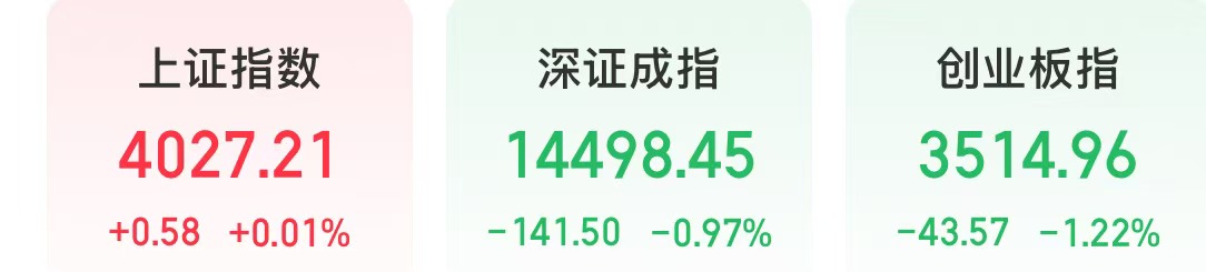 截至收盘,上证指数上涨0.01%,深证成指下跌0.97%,创业板指下跌1.22%。