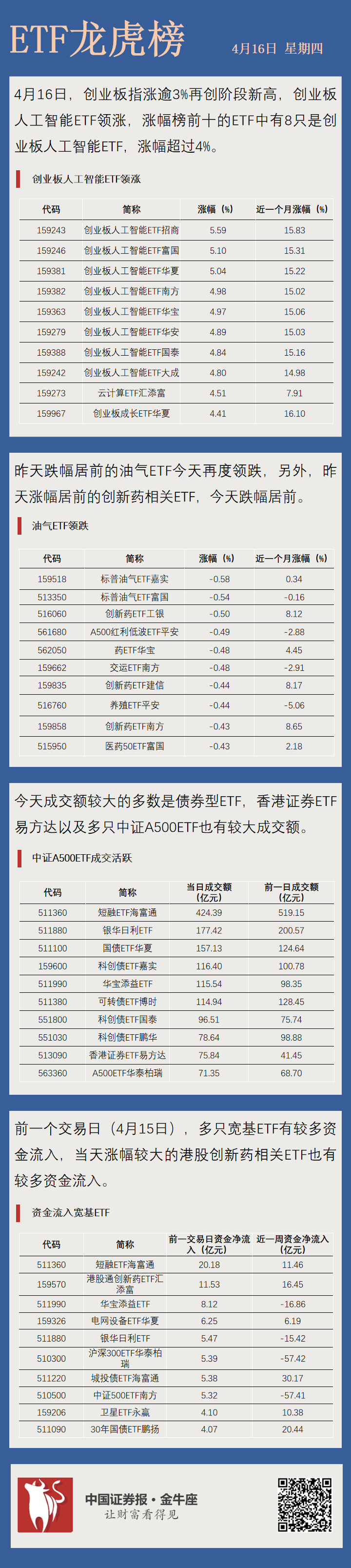 【ETF龙虎榜】创业板指再创阶段新高,创业板人工智能ETF领涨