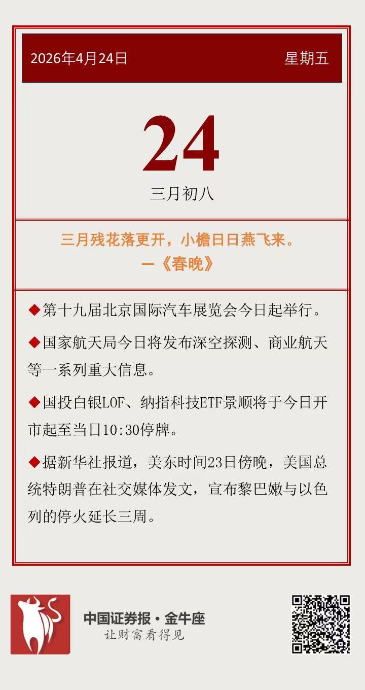 【投资日历】周五(4月24日)资本市场大事