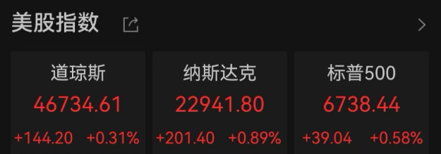 当地时间10月23日,美股三大股指走强。截至收盘,道指涨0.31%,标普500指数涨0.58%,纳指涨0.89%。