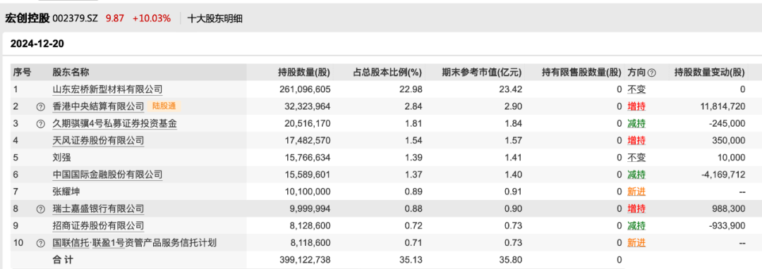 总体来说,从2024年11月至年底,外资买入或增持的企业有:三花智控、宏创控股、阿特斯、哈森股份、富煌钢构、圣泉集团、卓易信息、世茂能源、华海诚科等公司。可以看到,随着国内基本面向好,外资机构的投资偏好进一步聚焦基本面向好和景气度上行公司。此外,对于并购重组标的,外资机构的偏好也十分明显。记者注意到,宏创控股、哈森股份、富煌钢构、华海诚科等近期筹划并购重组的公司,在停牌前均出现了外资股东的增持或买进前十大股东的情况。1月8日早盘,宏创控股因重组事项继续涨停。1月7日晚,宏创控股公告,公司因拟发行股份购买山东魏桥铝电等交易对方合计持有的山东宏拓实业有限公司100%股权,股票于2024年12月23日开市时起停牌。在截至停牌前1个交易日(2024年12月20日)的前十大股东中,“瑞士嘉盛银行有限公司-自有资金”最新持有宏创控股9999994股,持股比例0.88%;该股东自2024年三季度末新进入公司前十大股东榜,随后又在四季度增持了98.83万股。哈森股份2024年12月26日公告显示,公司正在筹划通过发行股份的方式购买辰瓴光学100%股权、苏州郎克斯精密五金45%股权,同时拟发行股份募集配套资金,公司于2024年12月12日开市起停牌,截至12月11日,摩根士丹利国际股份有限公司、高盛、巴克莱银行“抱团”成为该公司的新晋前十大股东,持股量分别为89.97万股、65.6万股、52.43万股。2024年三季度末,这三家外资机构尚未出现在哈森股份的前十大股东名单中。值得一提的是,华海诚科因拟收购衡所华威电子有限公司70%的股权同时募集配套资金的事项于2024年11月12日开市起停牌,截至停牌前的11月11日,摩根大通证券上榜公司第十大流通股东,持股36.6万股。2025年1月8日,公司更新披露了截至2024年12月30日的前十大流通股东榜,由于第十名的持股量为82.8万股,所以无法判断摩根大通证券后来的增减持情况。关注基本面质量一直是外资机构选股的主要逻辑,近期的几笔增持也能体现这一点。1月8日,三花智控披露回购前的股东榜单,截至2024年12月30日,科威特政府投资局持有公司2352万股,持股比例0.63%,也就是说,科威特政府投资局在2024年四季度中增持了公司478万股。在基本面上,三花智控作为全球领先的新能源汽车热管理系统控制部件制造商,2024年前三季度公司实现营业收入205.63亿元,同比增长8.36%;归母净利润23.02亿元,同比增长6.59%。阿特斯公告披露,截至2024年12月12日,瑞银集团新进入公司前十大股东榜,持有公司2217.7万股,持股比例为0.6%。机构认为,光伏行业经过了长期调整,2025年有望迎来景气度回升,能够在产能出清拉锯战中站稳脚跟的企业,基本面或将改善。此外,圣泉集团披露,截至2024年11月29日,法国巴黎银行-自有资金持有公司788.7万股,持股比例0.93%,新进入公司前十大股东。在基本面上,2024年前三季度,圣泉集团实现营业收入71.52亿元,同比增长6.87%;归母净利润5.81亿元,同比增长20.53%。资料显示,圣泉集团的酚醛树脂、呋喃树脂产销量规模位居国内领先、世界前列,在新能源领域及电子行业中占据重要地位。