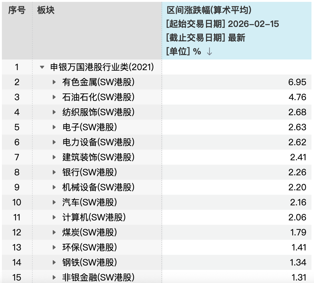 A股春节休市期间(2月15日至2月23日),港股三大指数小幅上涨。恒生指数、恒生科技指数、恒生中国企业指数分别累计上涨1.94%、0.47%、1.82%。