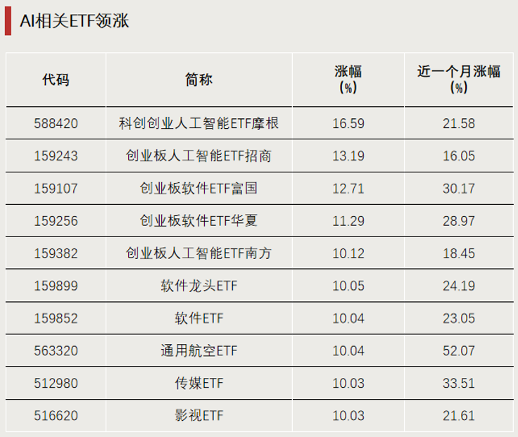 AI相关ETF涨幅居前
