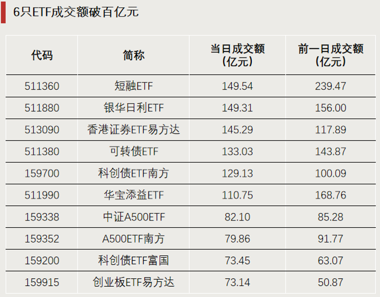 6只ETF成交额破百亿元